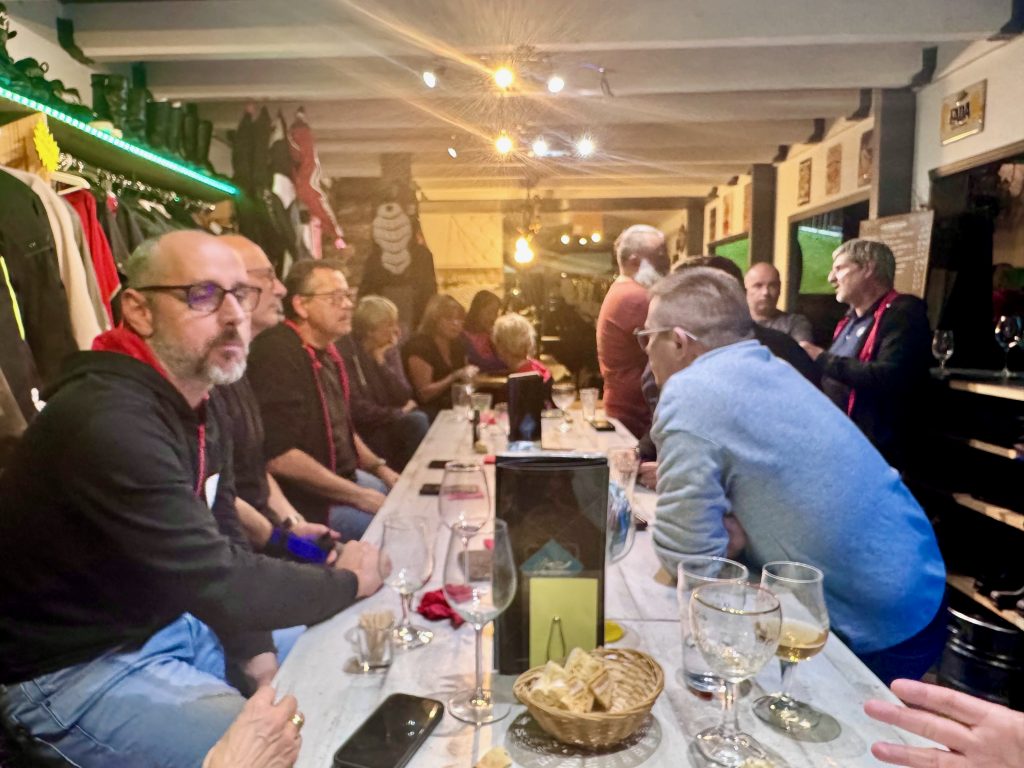 Tapas à profusion, bières avec modération, bonne humeur et bavardages en tout genre ont animé la soirée et pourtant, en regardant le parking devant le bar, je réalise que très peu d’entre nous sont venus en deux roues, l’horaire tardif et la nuit ayant sans doute eu raison de notre velléité.
