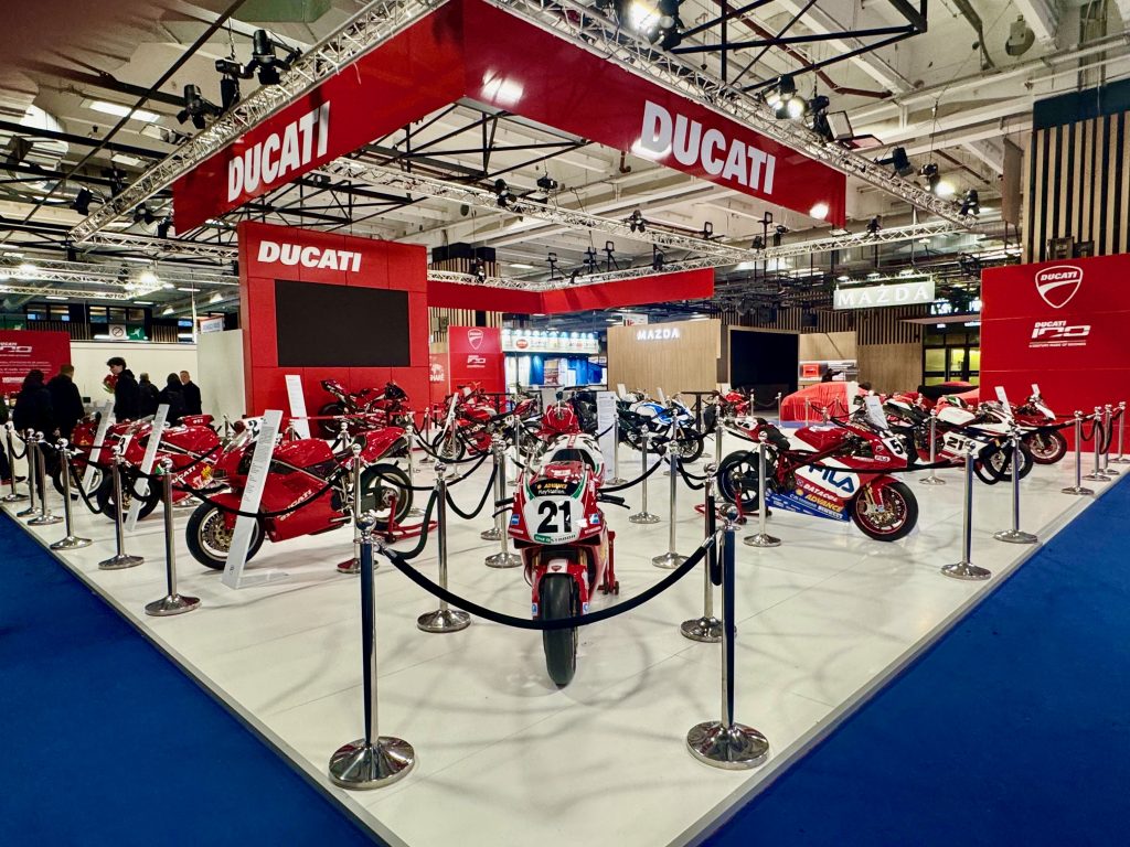 Samedi 31 janvier, il est 8 heures 30 lorsque nous arrivons au salon en compagnie des collègues des autres DOCs. Nous arpentons les allées désertes et nous nous rendons sur le magnifique stand Ducati.